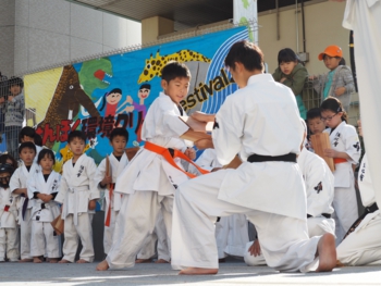 恒心會館の子どもたちが、板割り、型の披露など、空手の演武を披露してくれました。館長の厳しい指導のもと、汗を流している子どもたちの演武は迫力満点でした。