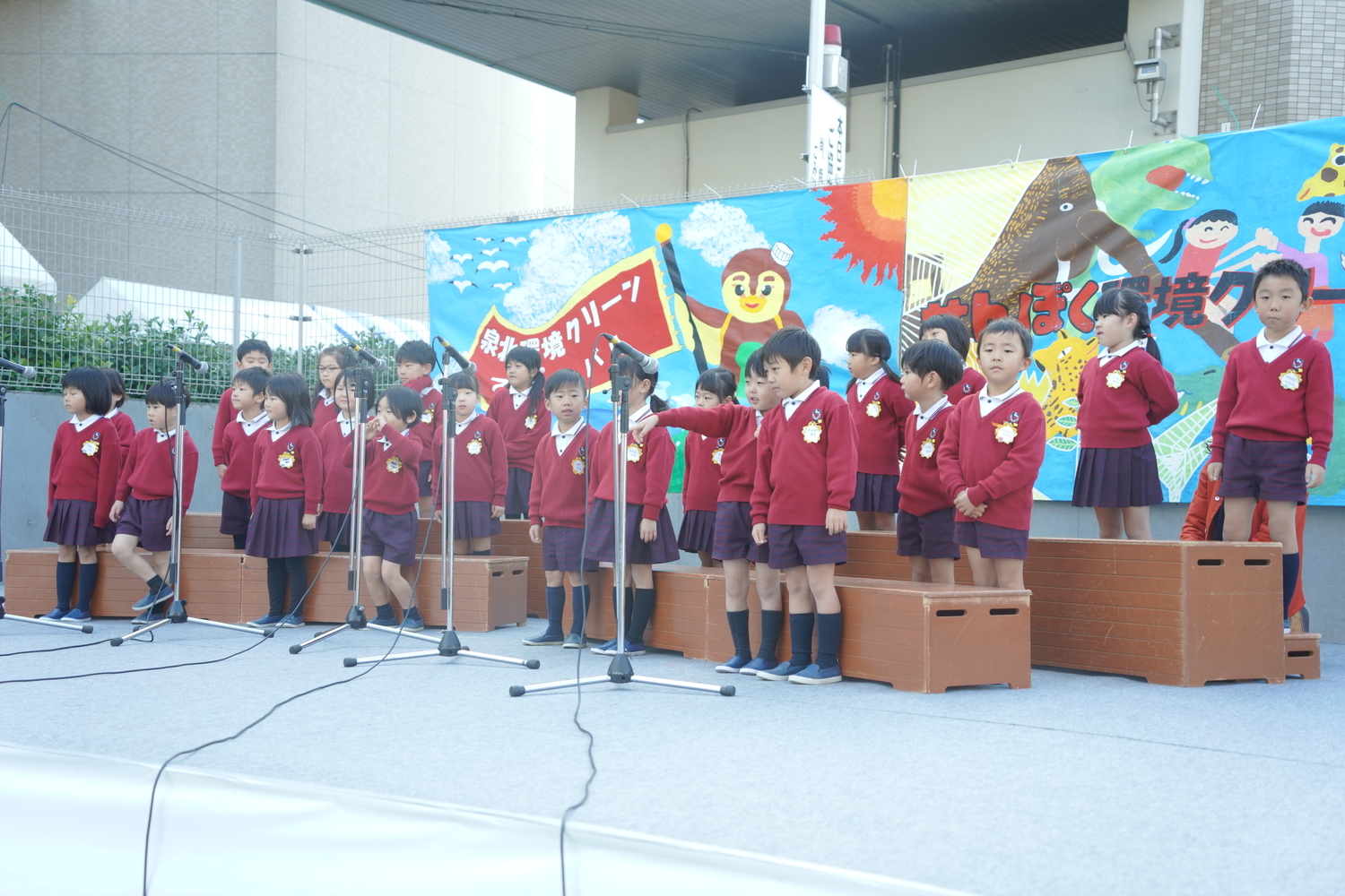 ほし組、そら組、にじ組の子どもたちが、元気いっぱいに明るい歌声で合唱を披露してくれました。