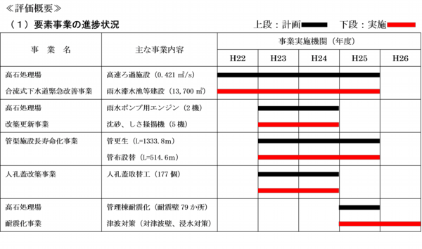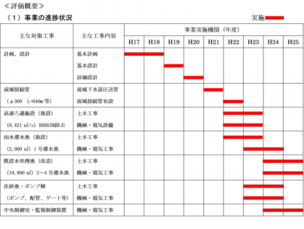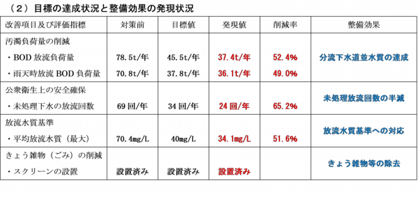本年度、この合流式下水道緊急改善事業が中間年度を迎えたことから、中間評価を実施しましたので、これを以下に公表します。