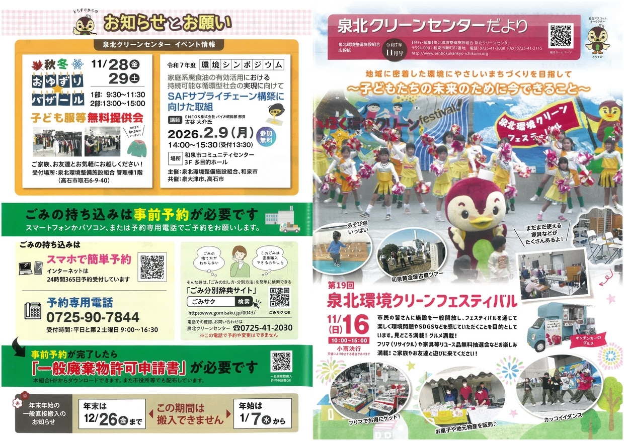 第19回泉北環境クリーンフェスティバルを11月16日(日)に開催します。