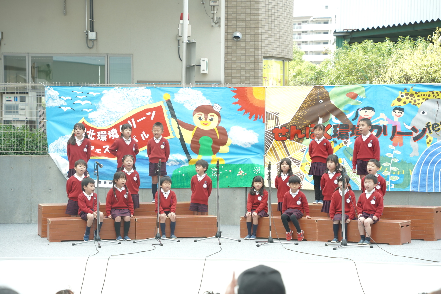 ほし組、そら組、にじ組の子どもたちが、元気いっぱいに明るい歌声で合唱を披露してくれました。