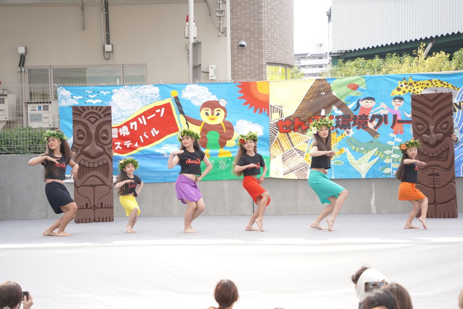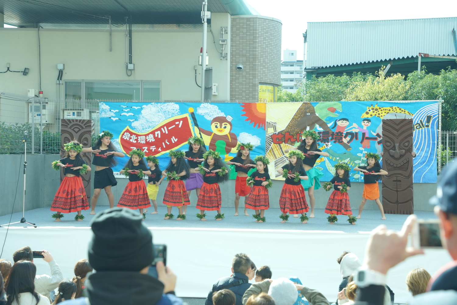本格的な衣装に身を包んだ元気な子どもたちがフラダンスを披露してくれました。おかげで天候も陽気になりました。