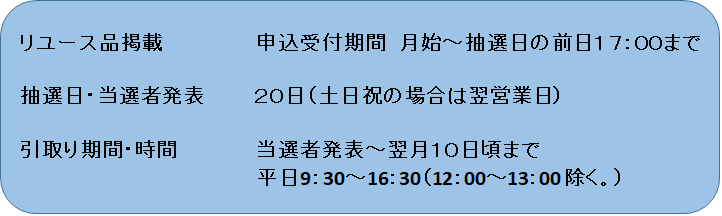 - 家具等リユース品無料抽選会をホームページ上で定期的(月次)に開催いたします。