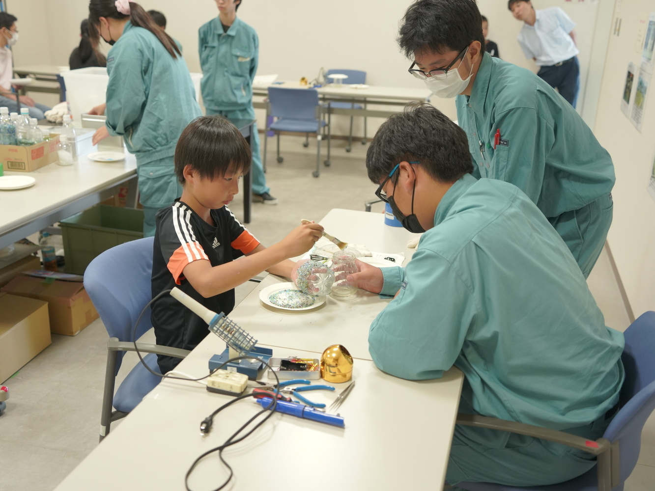イベントでは、地域で活動されている方々にもご協力いただき、書道教室、ハーバリウム教室、ecoおもちゃ作り教室、電子工作教室、ごみ処理場見学を行いました。さらに、今回からの新企画として絵画教室を行い、ご来場いただいた方からは大変好評でした。