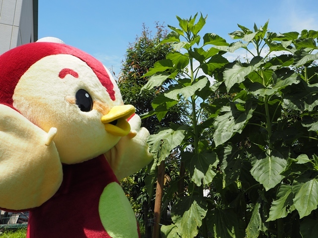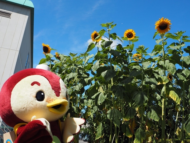 - ぼくも緑を増やすお手伝いで、場内にひまわりの種を植えたよ。
