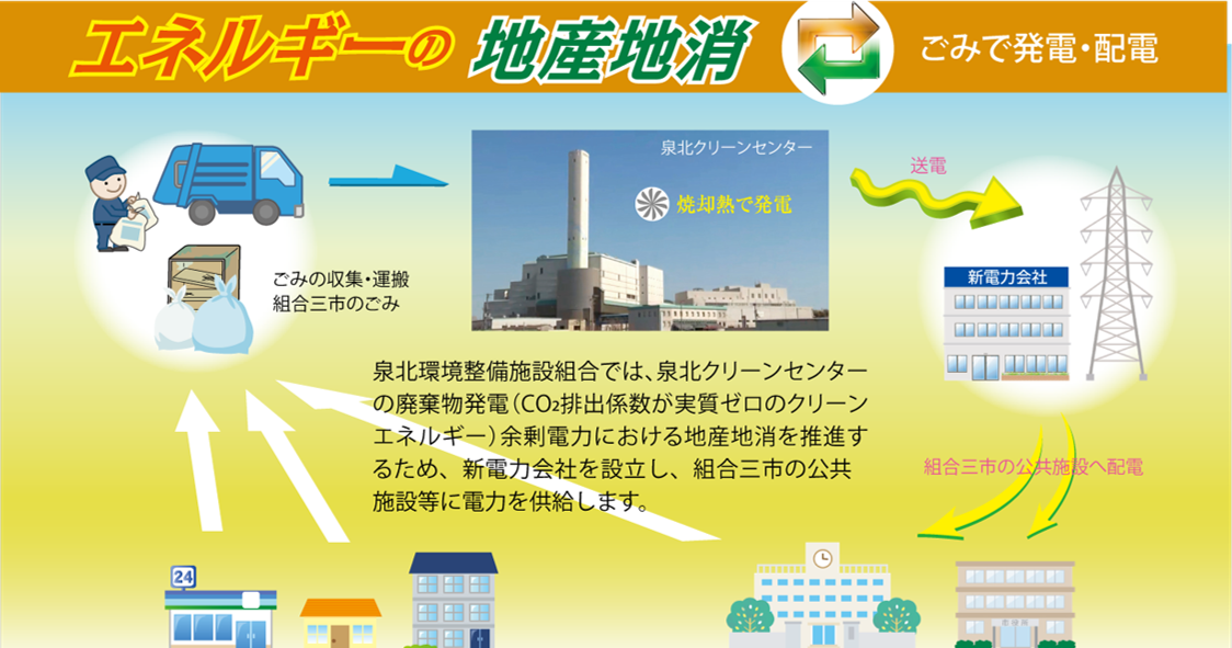 泉北環境整備施設組合では、泉北クリーンセンターで発電した電気を、エネルギーの地産地消・地域の脱炭素化を目的として利用するために、地域新電力会社を設立します。